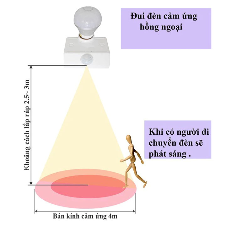- Ứng dụng: Sản phẩm dùng để Tự động bật đèn khi có người và tự động tắt tắt đèn khi không có người