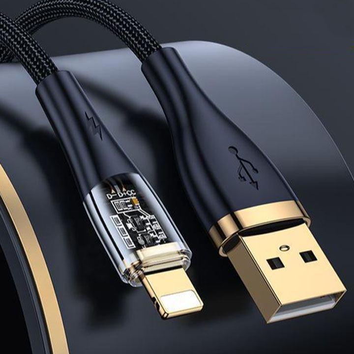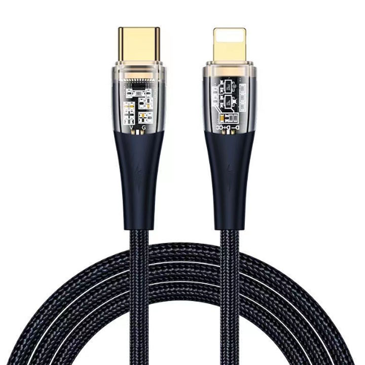 Cáp Sạc Điện Thoại TSV Sạc Nhanh PD 15W 30W Màu Đen Đầu Sạc Trong Suốt Dài 120Cm