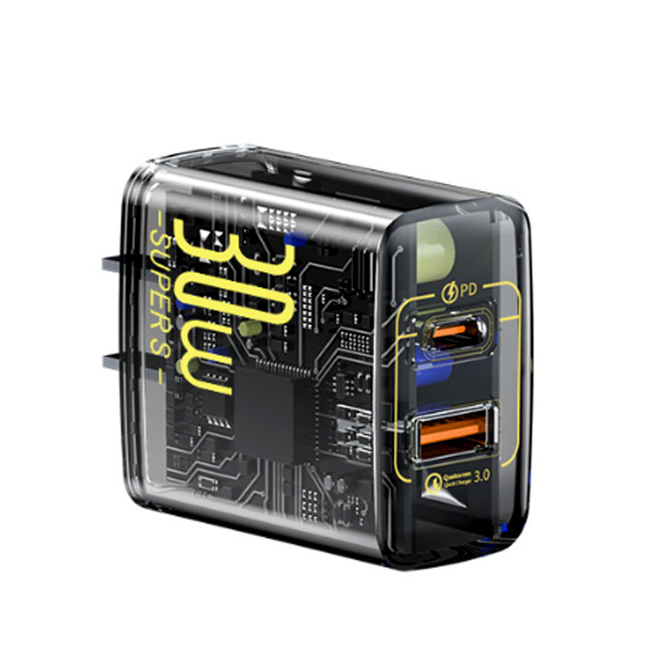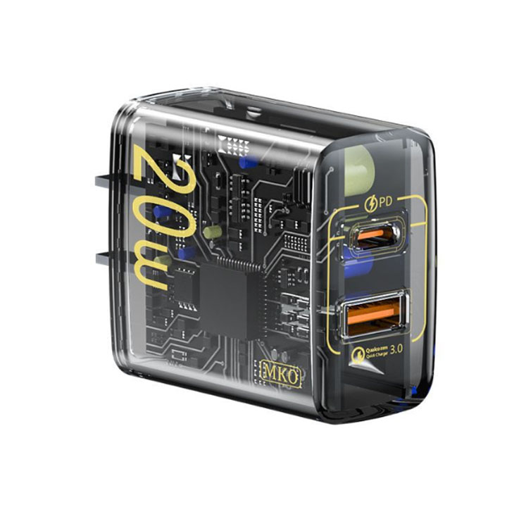 - Củ sạc làm bằng nhựa ABS trong suốt siêu bền
