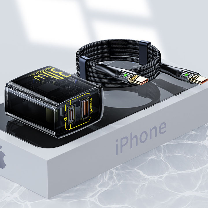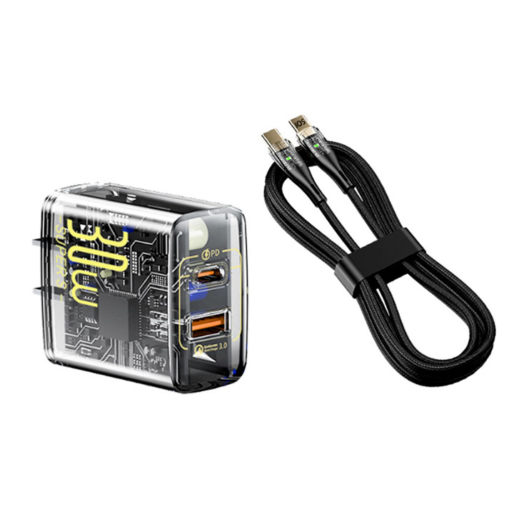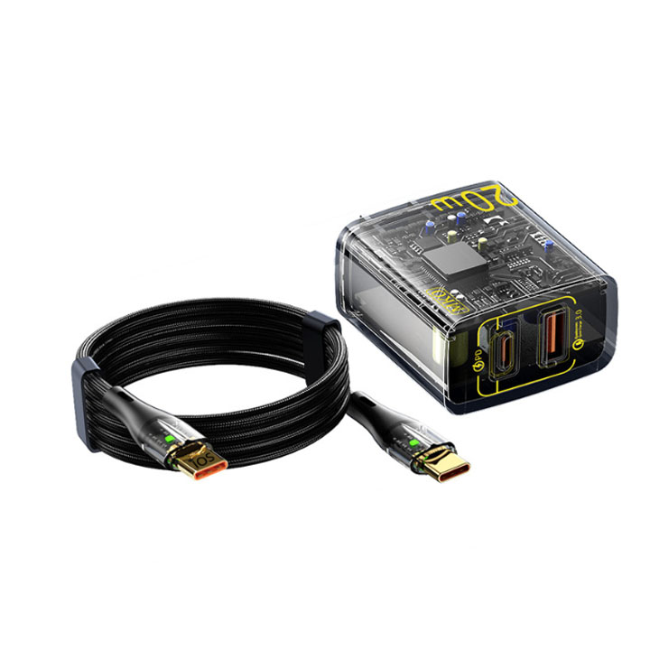 Bộ Củ Sạc Cáp Sạc Điện Thoại Trong Suốt GN Sạc Nhanh PD Đầu Sạc TypeC Dây Cáp Dài 150Cm