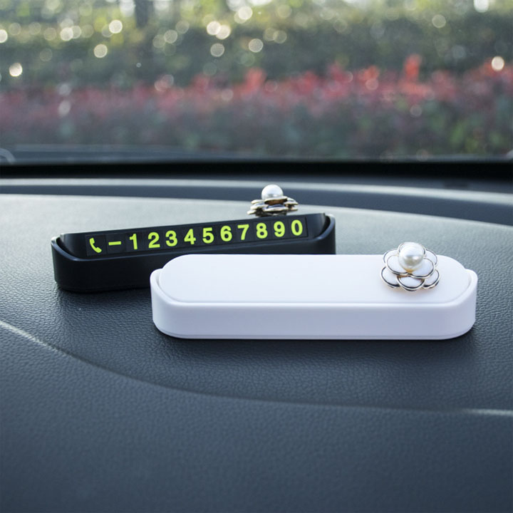 Bảng Số Điện Thoại Họa Tiết Hoa Trà Ngọc Trai Gắn Taplo Ô Tô Nữ Tính