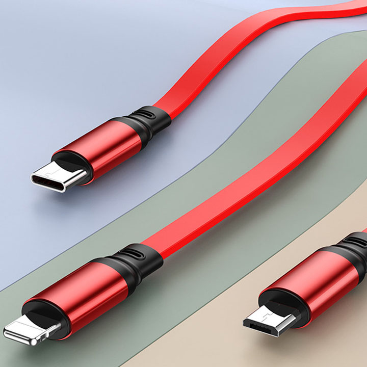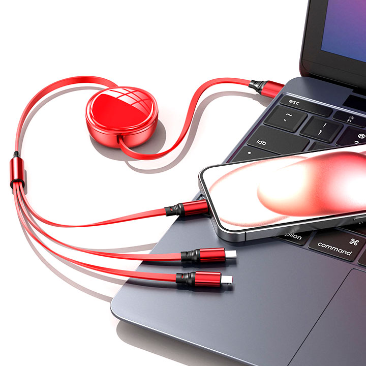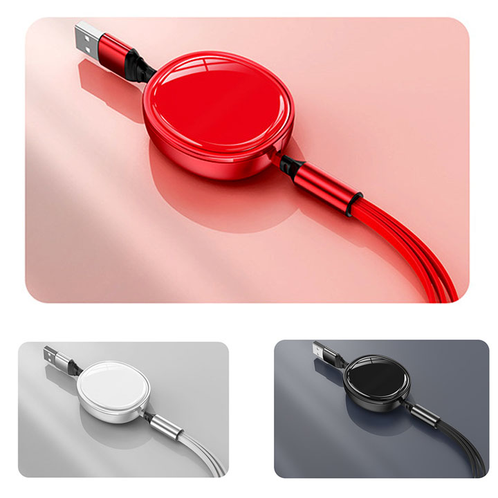 Cáp Sạc Điện Thoại 100W Cuộn Rút Đỏ Sáng Bóng SĐ 3 Đầu TypeC Liling Micro Dài 120CM