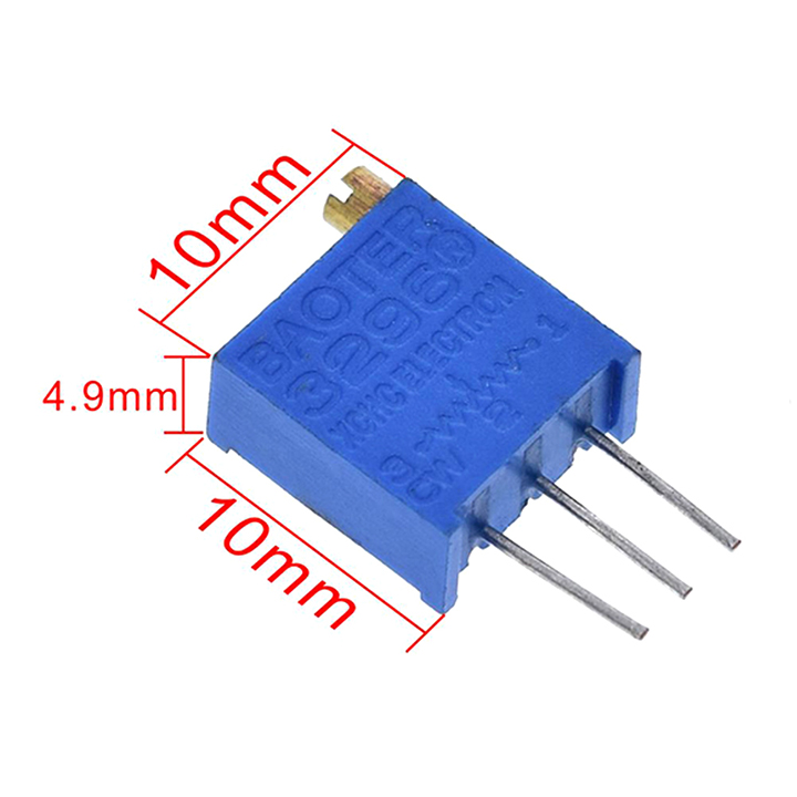 - Biến trở vi chỉnh 3296W dùng để lắp ráp theo mạch điện tử điều chỉnh điện trở chính xác, ví dụ như điều chỉnh độ tinh chỉnh của màn hình LCD 16x2...