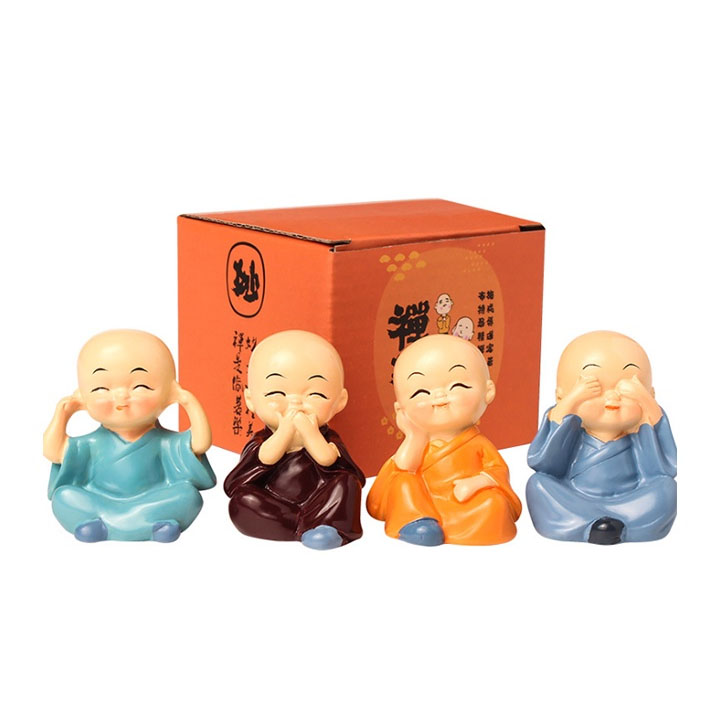 - Tên sản phẩm: Bộ Tượng 4 Chú Tiểu Tứ Không Trang Trí Xe Hơi, Tiểu Cảnh, Bàn Làm Việc.