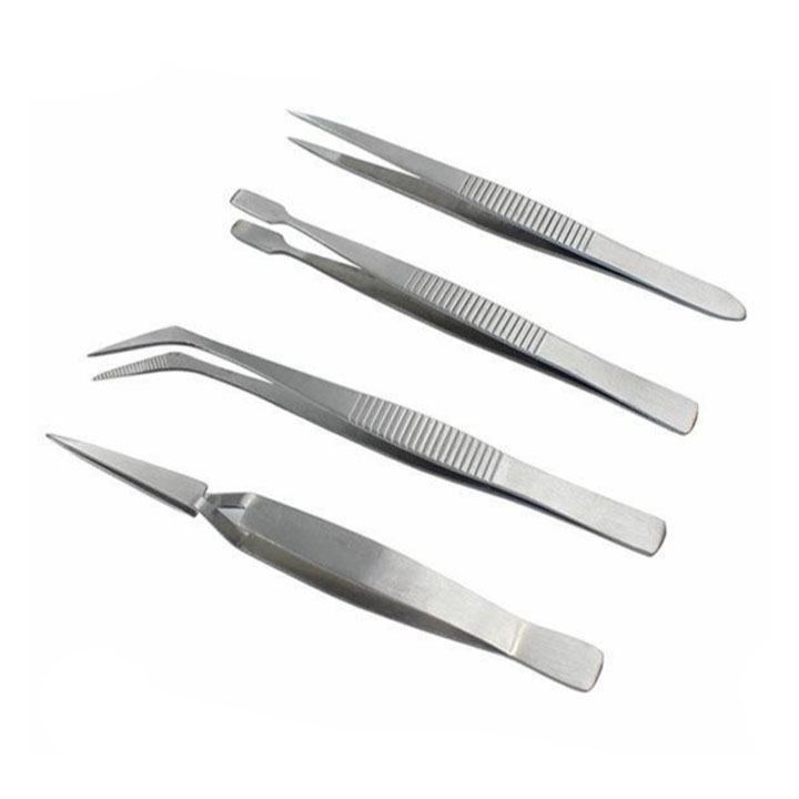 Bộ 4 Nhíp Kẹp Gắp Linh Kiện Hợp Kim Thép Dày Không Rỉ Màu Bạc 35G