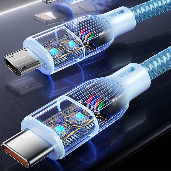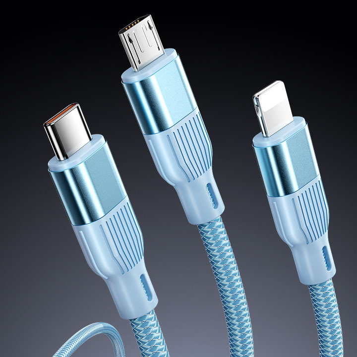 Bộ Củ Cáp Sạc 3 Đầu Xanh XBCA Sạc Siêu Nhanh 120W Truyền Dữ Liệu 2M