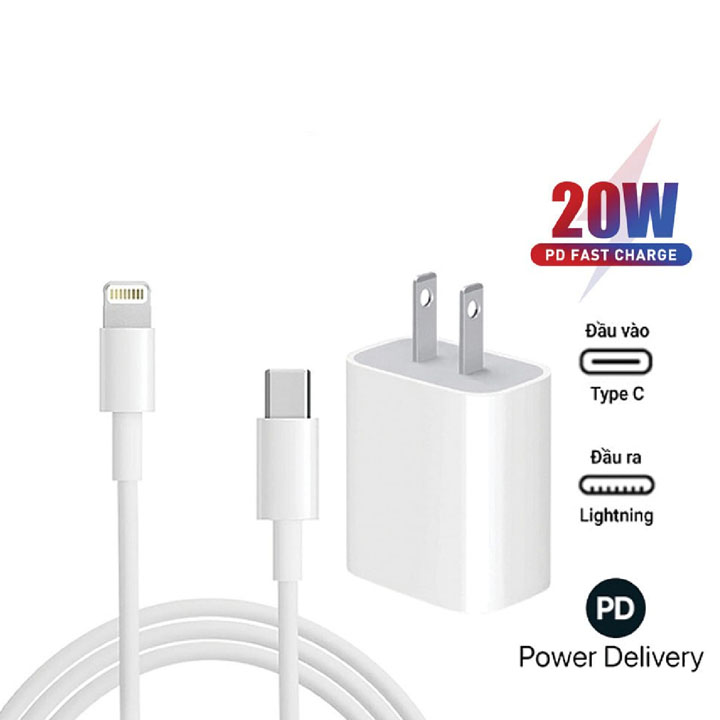 Bộ Củ Cáp Sạc nhanh PD 20W Điện Thoại Di Động 120Cm Cổng lightning Táo