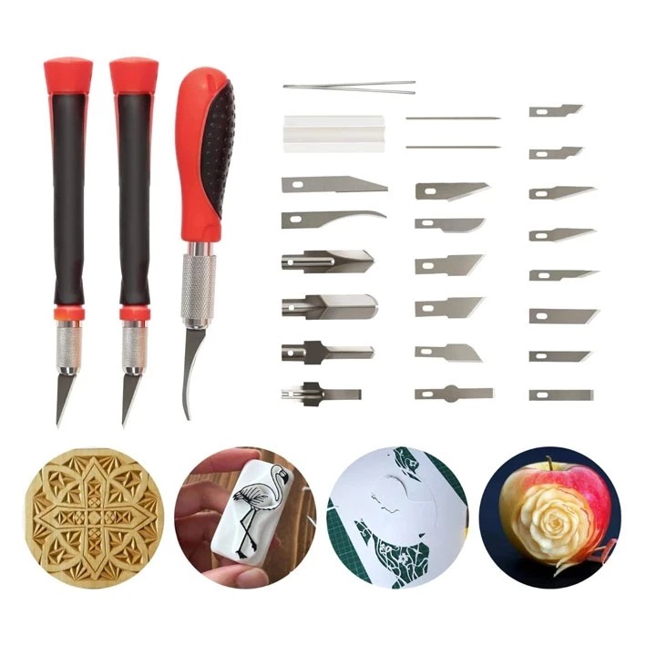 - Bạn là người có sở thích làm đồ handmade, đồ thủ công, trang trí hãy thỏa sức sáng tạo với bộ dao khắc trổ 13 trong một, với các lưỡi cắt, tỉa sắc nhọn sẽ giúp bạn tạo nên các đường điêu khắc tinh tế và đẹp mắt.