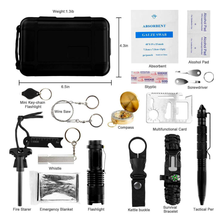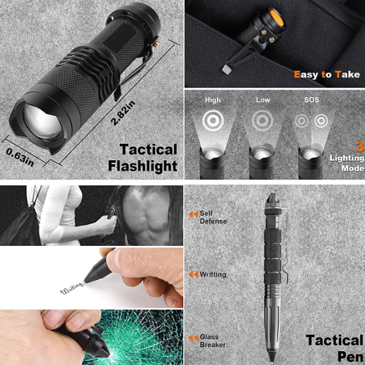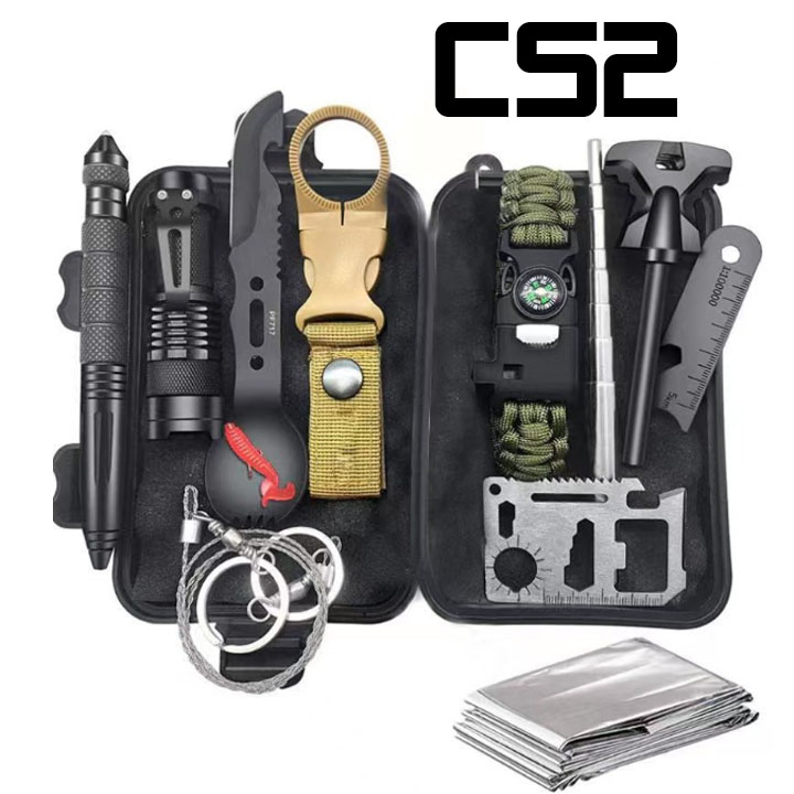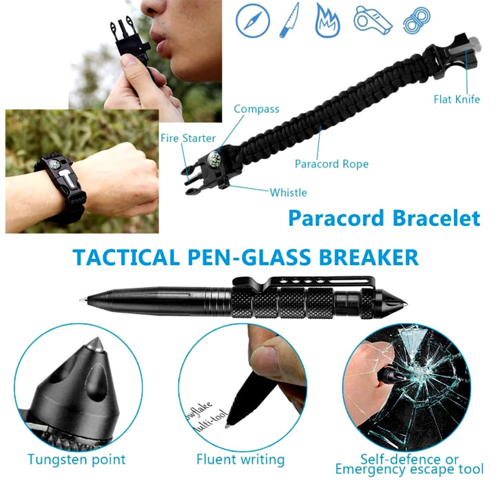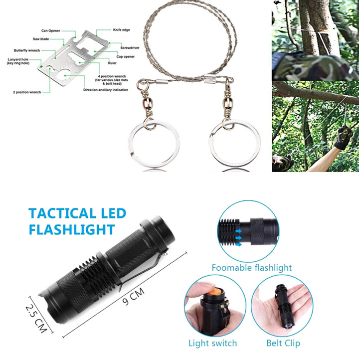 - Ứng dụng: Sản phẩm dùng để Bộ cứu hộ sinh tồn khẩn cấp nhiều món giúp bạn định hướng – chiếu sáng – tự vệ – giữ ấm
