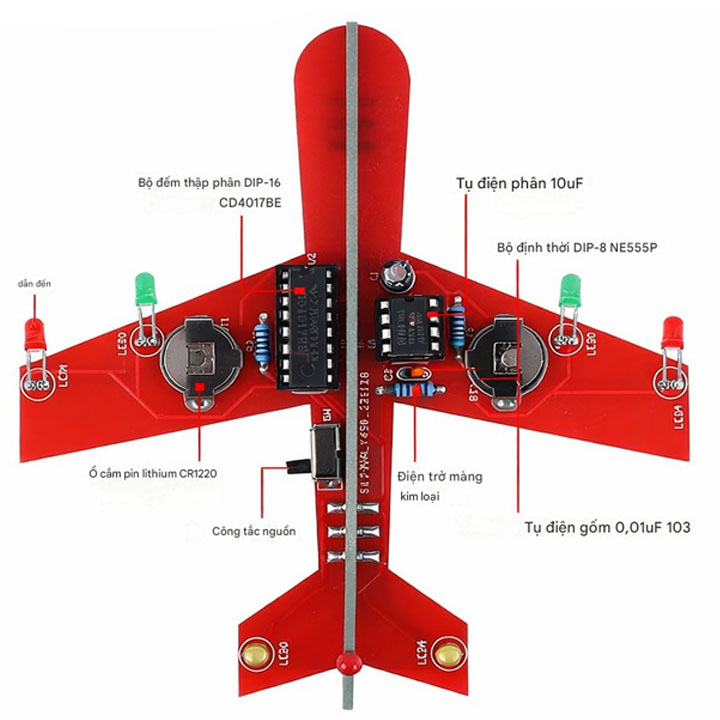 Kit Lắp Ráp Máy Bay Điện Tử LED Nhấp Nháy DIY Bộ Học Tập Điện Tử STEM