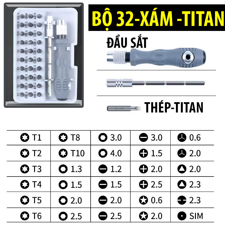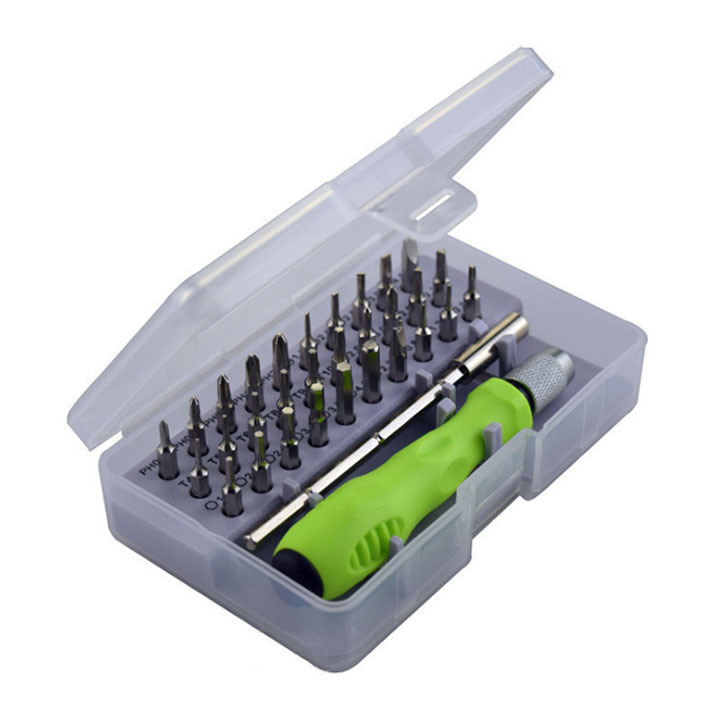 - Bộ tua vít đa năng 32 chi tiết là bộ dụng cụ cầm tay phù hợp cho việc sửa chữa các thiết bị trong gia đình, điện thoại, máy tính ... Với 32 đầu vít khác nhau, đảm bảo dùng được với mọi loại linh kiện, thiết bị.