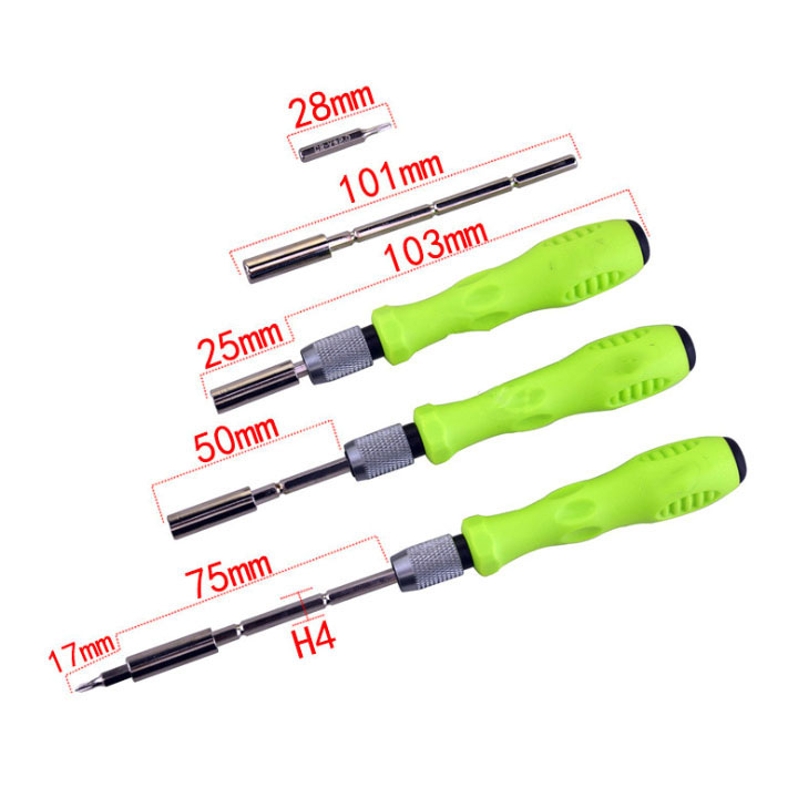 - Đặc biệt, đầu vít với 4 đốt khác nhau, mỗi đốt dài 3,5cm tạo ra tua vít với các chiều dài.