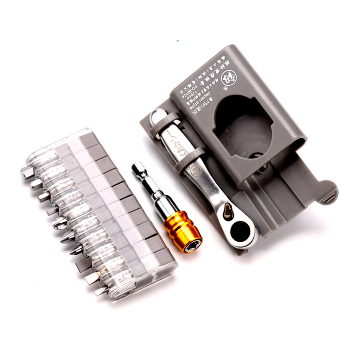 - Bộ gồm: tay cầm + 10 đầu vít (các loại đầu vít chữ +, chữ –, hoa thị, 2 cạnh)