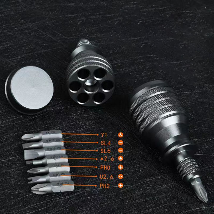 Tua Vít 7 Trong 1 Kết Hợp Đầu Vít Trong Thân Tua Vít Mạ Crom Không Rỉ Nặng 110g Dài 8cm