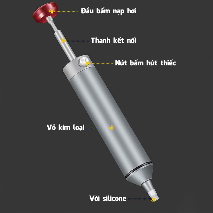 - Cấu trúc hoàn hảo: thân kim loại và chân không áp suất cao, bơm hút thiếc này có thể giúp bạn hút chất hàn hiệu quả. Trục tự làm sạch tích hợp để tránh tắc nghẽn
