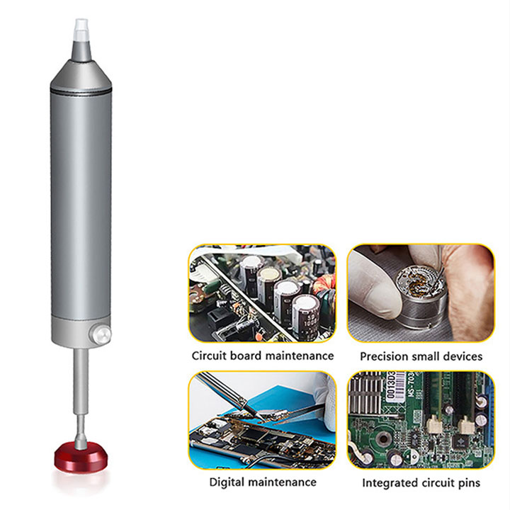 - Phạm vi sử dụng rộng rãi: Bơm hút có thể được sử dụng để sửa các lỗi bảng mạch nhỏ trên PCB, hàn lại và khử hàn, loại bỏ thiếc và các thành phần khác khỏi bảng mạch in, vv để đáp ứng các nhu cầu hàn khác nhau của bạn.