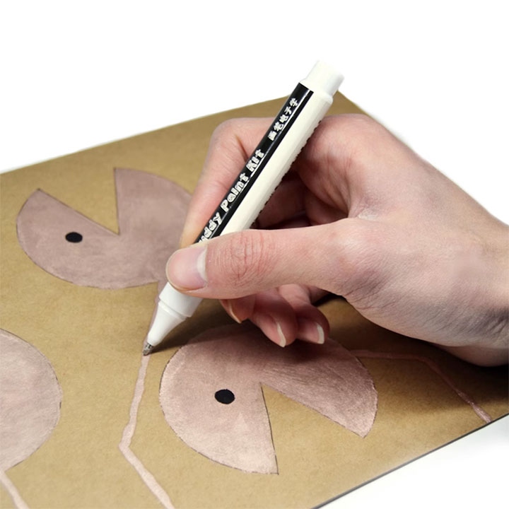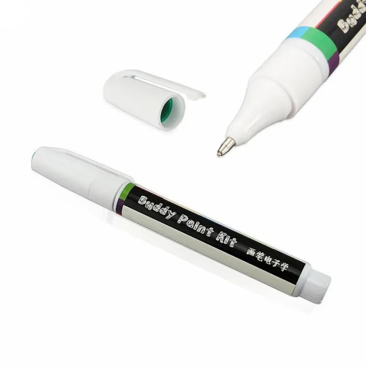 - Bút mực dẫn điện giúp bạn đạt được tất cả những điều này, nó sử dụng sơn điều chế tự chủ tên là Buddy, thành phần chính là bột hỗn hợp đồng dẫn điện bạc và bột niken, nó có thể dẫn điện trong hai hoặc ba phút sau Làm khô bằng không khí.