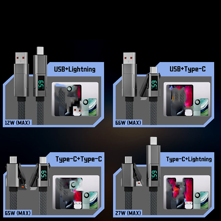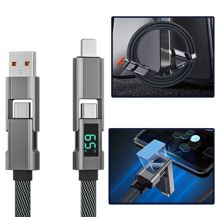 Cáp Sạc Điện Thoại Màn Hình Số 4 Trong 1 VZ Truyền Dữ Liệu Sạc Nhanh 65W Nặng 80G