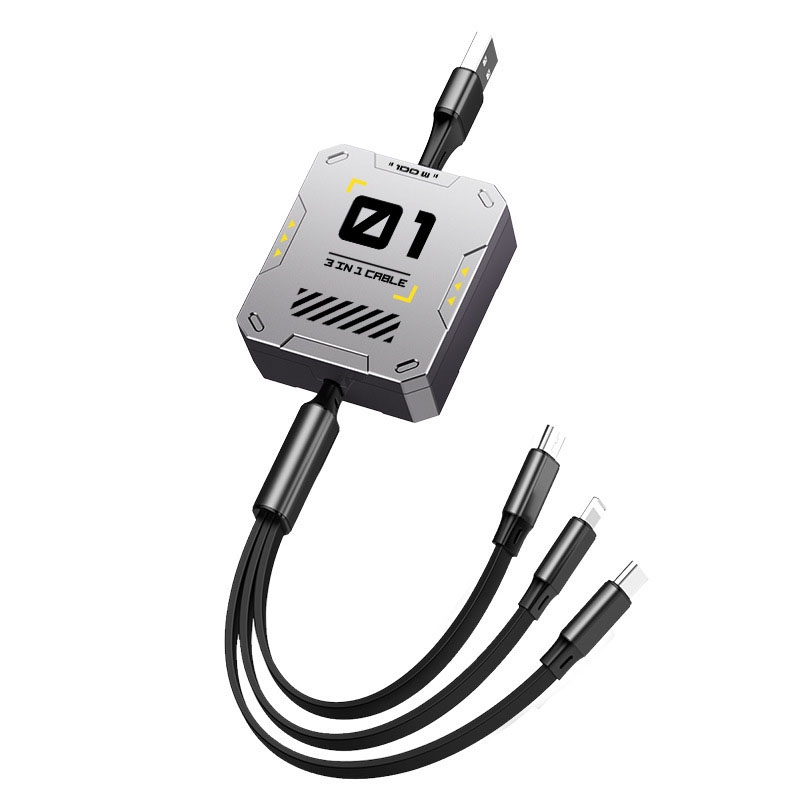 Cáp Sạc Điện Thoại 3 Đầu PE Hình Hộp Sạc Nhanh 66W Truyển Dữ Liệu Di Động Dài 120CM