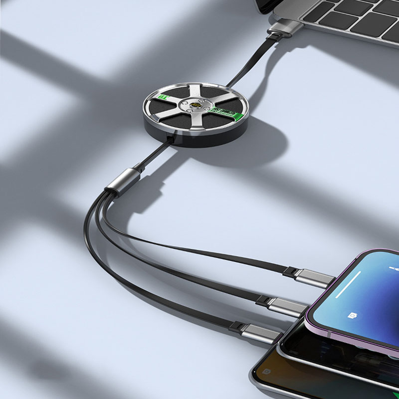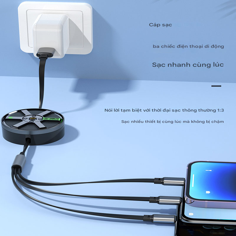 Cáp Sạc Điện Thoại 3 Đầu Cuộn Rút BX Sạc Nhanh 120W Dài 2M 60G