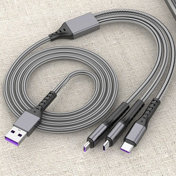 Cáp Sạc Điện Thoại 3 Đầu ENP Truyền Dữ Liệu Sạc Nhanh 66W Sợi Nhôm Dệt Chống Đứt Dài 120Cm