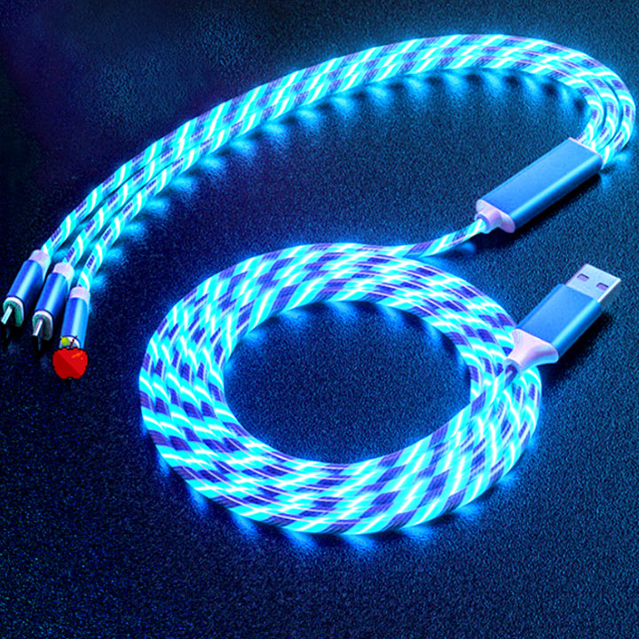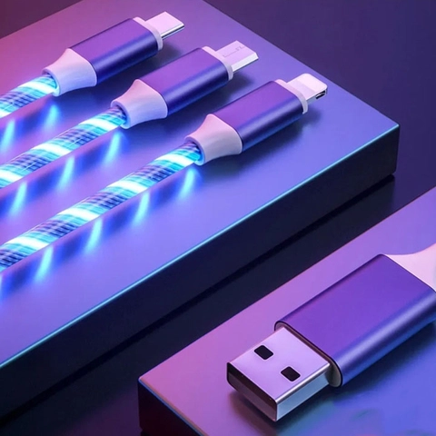 - Dây cáp sạc đèn led 3 đầu Lightning, Type C, Micro USB cho Iphone, Samsung, Oppo, Xiaomi...