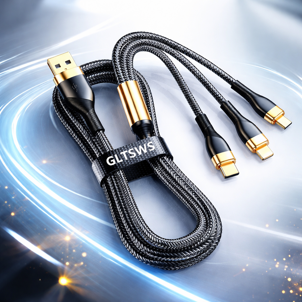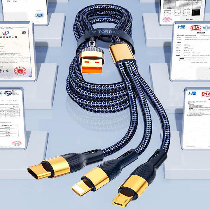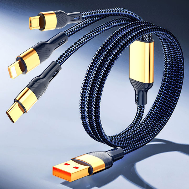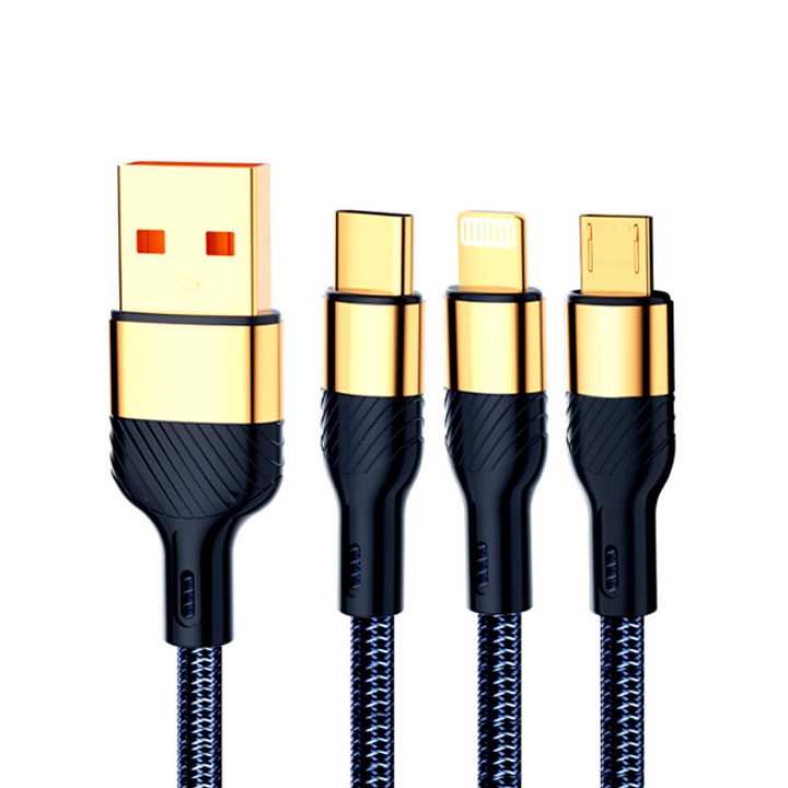 Cáp Sạc Điện Thoại 3 Đầu Mạ Vàng MVBV Dữ Liệu Sạc Nhanh 200W Dài 2M