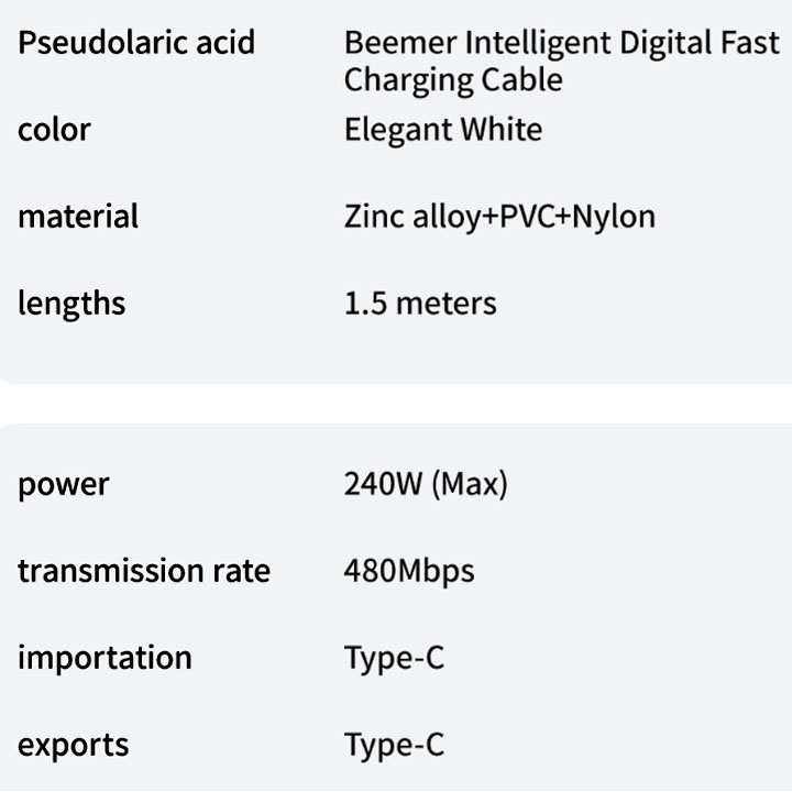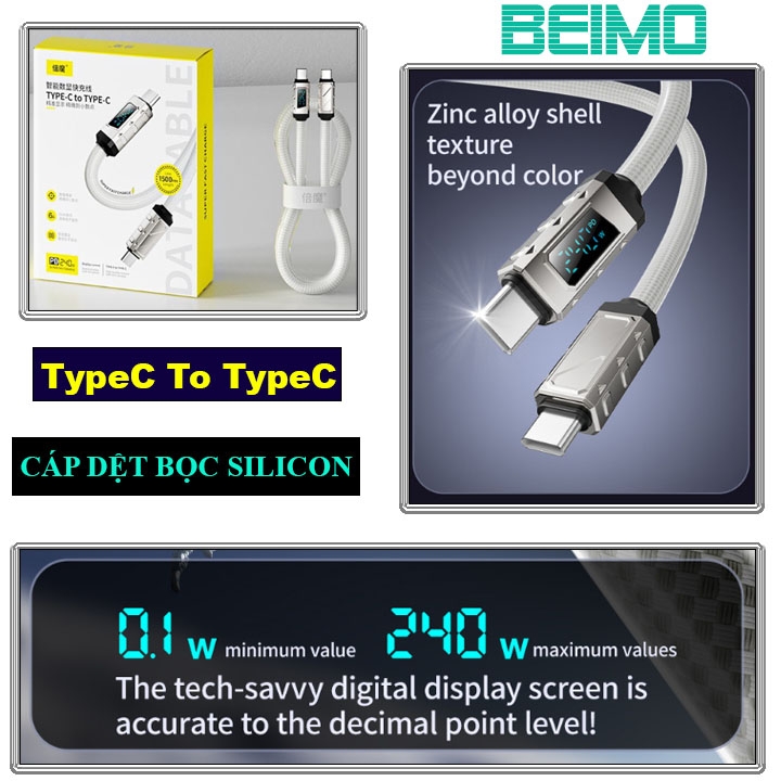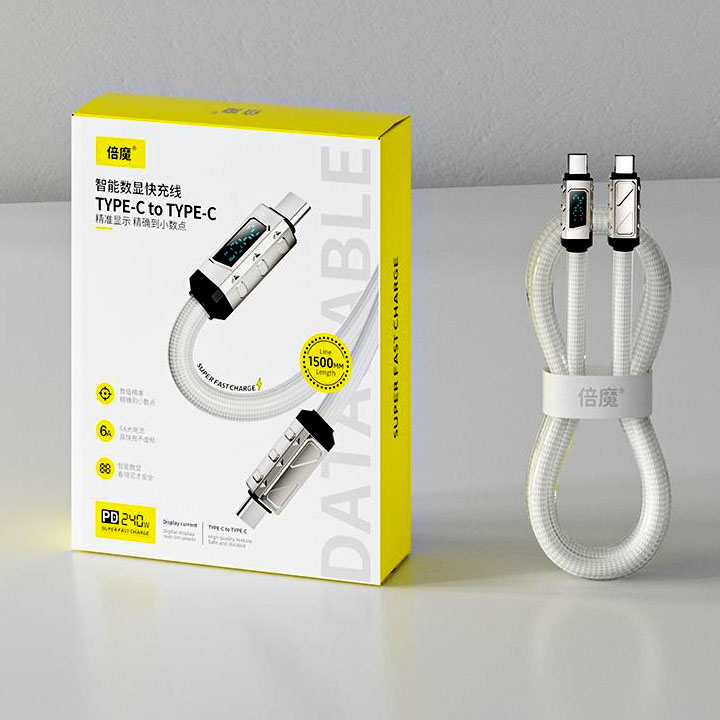 Cáp Sạc Điện Thoại Chữ Basemo BFG C To C Hiển Thị Số Truyền Dữ Liệu Sạc Nhanh 240W Dài 150CM