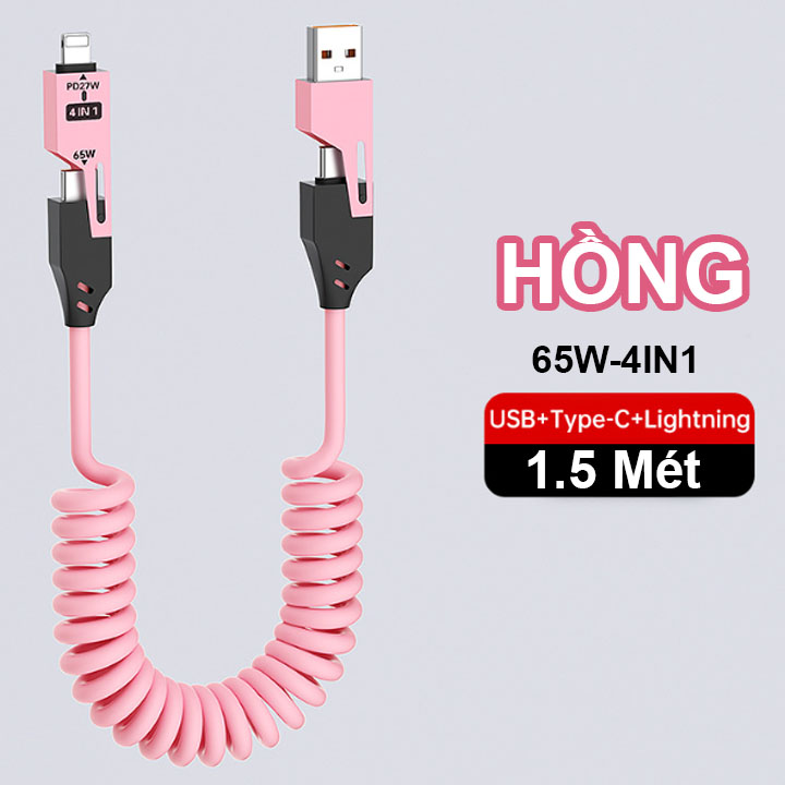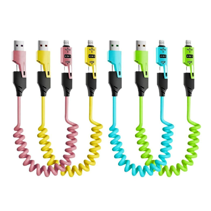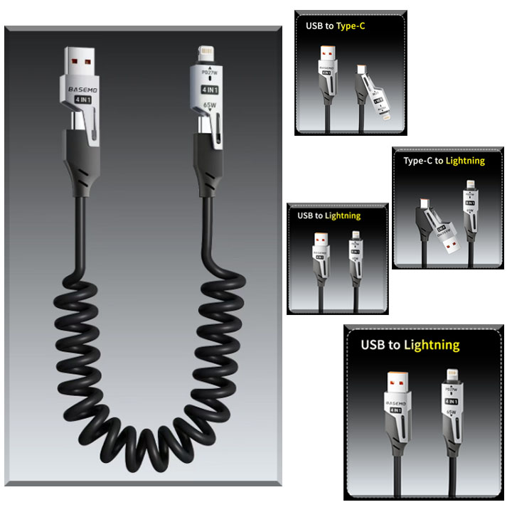 Cáp Sạc Điện Thoại Basemo 4 Trong 1 Lò Xo Sạc Nhanh 65W Sạc Được Tất Cả Điện Thoại Di Động