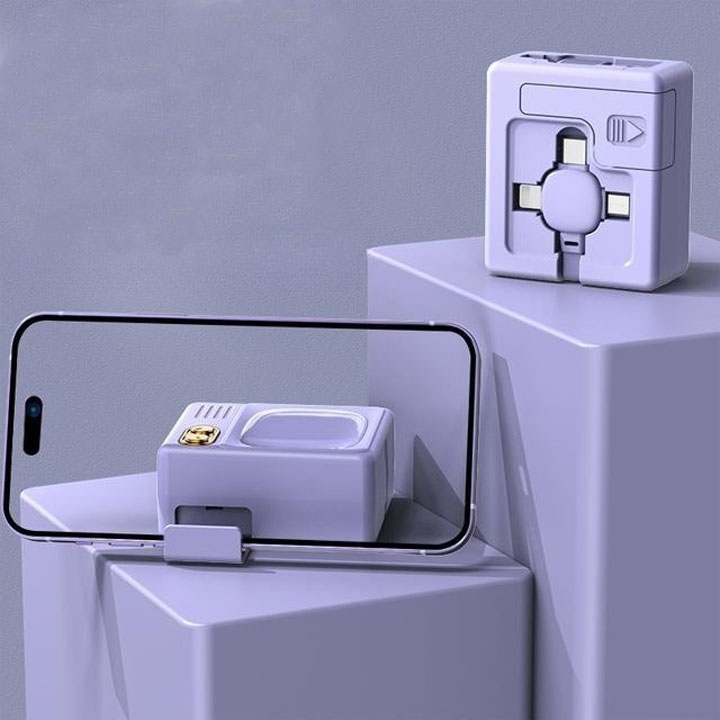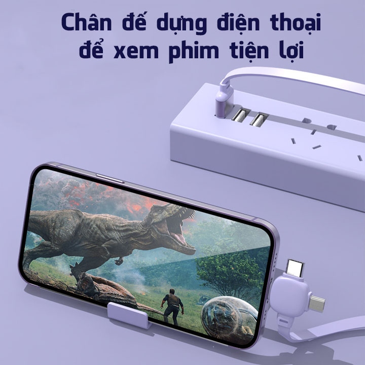 Cáp Sạc Nhanh Và Truyền Dữ Liệu 3 in 1 Dây Rút Gọn Hình Tivi Cổ Có Gá Để Dựng Điện Thoại