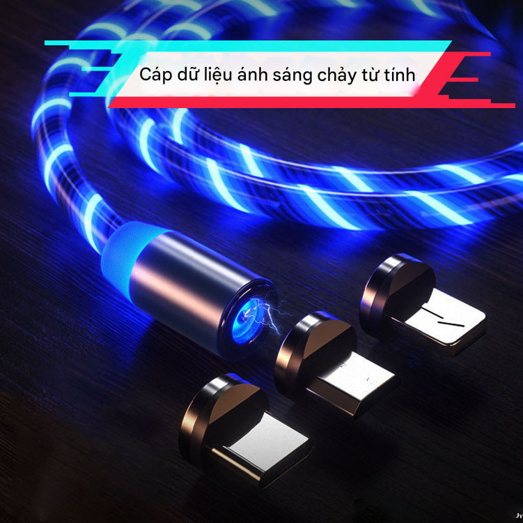 Cáp Sạc Nam Châm 3 Đầu Có Đèn LED - Dây Dù Chống Gãy - Sạc Nhanh An Toàn