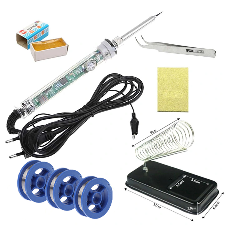 Combo Mỏ Hàn 907 220V-60W và 7 Món Phụ Kiện (Kẹp Linh Kiện, Kệ Hàn, Bọt Biển, 3 Cuộn Thiếc, Nhựa Thông)