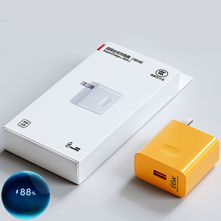 Củ Sạc Điện Thoại Di Động HS Sạc Nhanh QC 66W Màu Vàng Nặng 30G Kích Thước 28x50x50MM