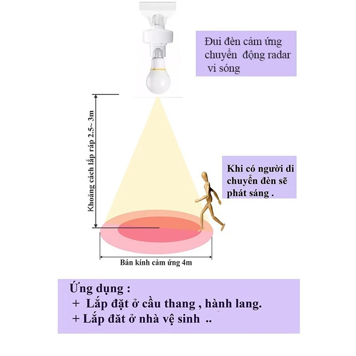 - Ứng dụng: Sản phẩm dùng để Sử dụng để lắp ở trong vệ sinh, cầu thang, hành lang đui sẽ tự động bật đèn