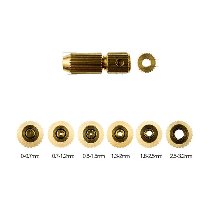 - Đầu Kẹp Mũi Khoan Mini là kẹp mũi khoan chuyên dùng để gắn các loại động cơ motor nhỏ có trục đường kính 2mm, 2,3mm, 3mm.