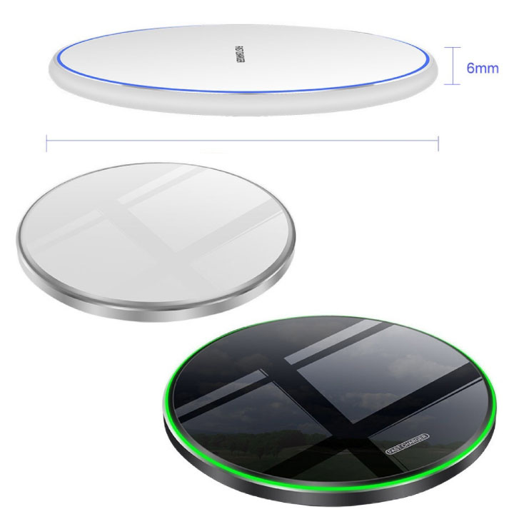Đế Sạc Nhanh Không Dây TML Led Viền Tráng Gương Sạc Nhanh QI 20W Đường Kính 10CM