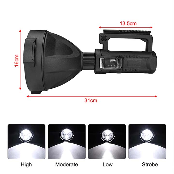 - Đèn sạc cầm tay siêu sáng được sản xuất trên dây chuyền công nghệ hiện đại, trang bị bóng led lõi XHP70 công nghệ của mỹ cho công suất chiếu sáng mạnh 50W cho tầm chiếu xa trong đêm tối khoảng trên 500 mét. Thân đèn được làm từ nhựa ABS siêu bền, chóa đèn to, mặt kính phía trước đèn lồi làm tăng khả năng chiếu sáng ở phạm vi rộng. Đèn có nhiều chế độ chiếu sáng khác nhau bao gồm :Cao / trung bình / thấp / nhấp nháy.