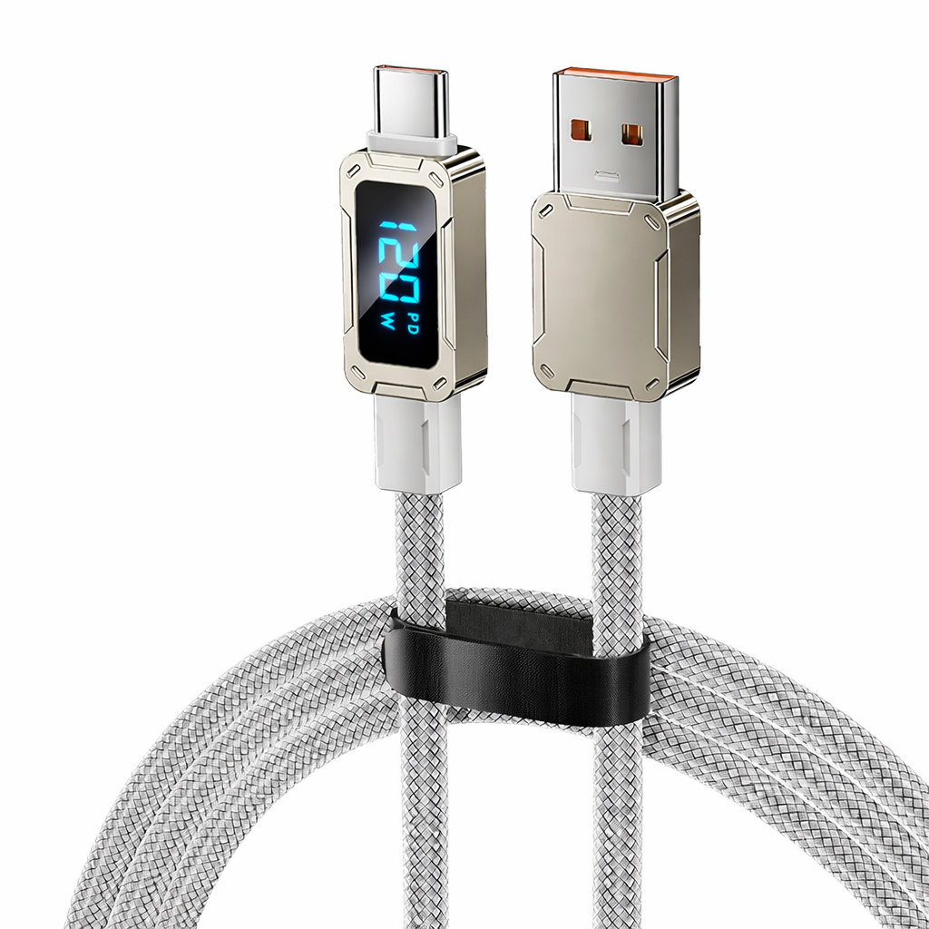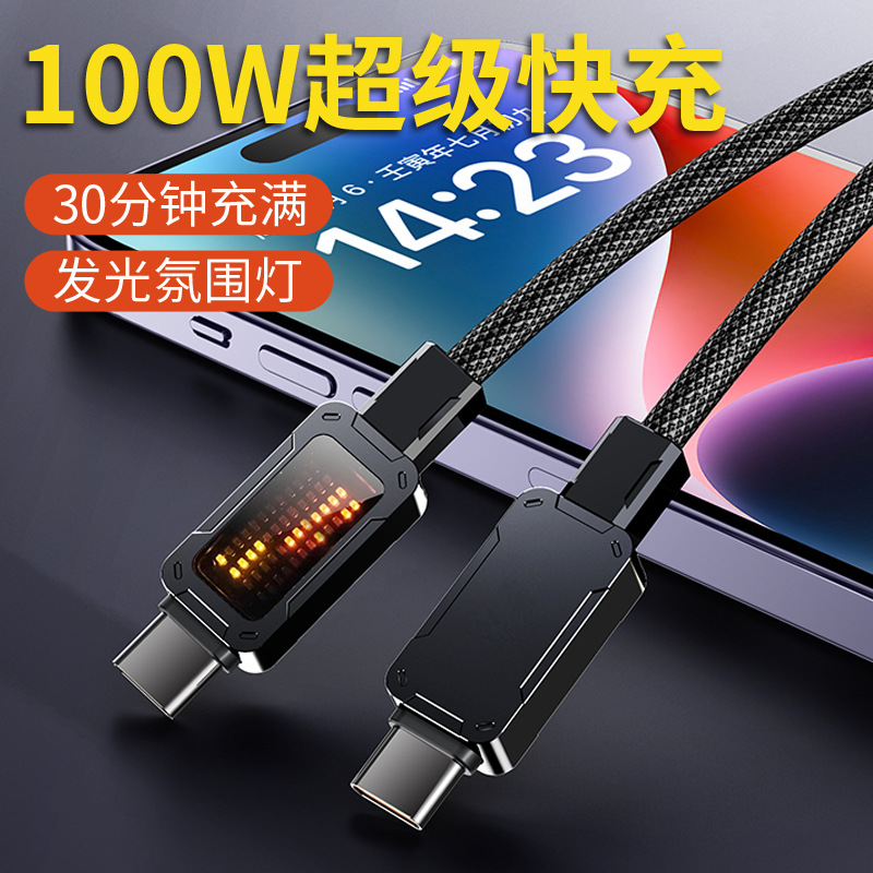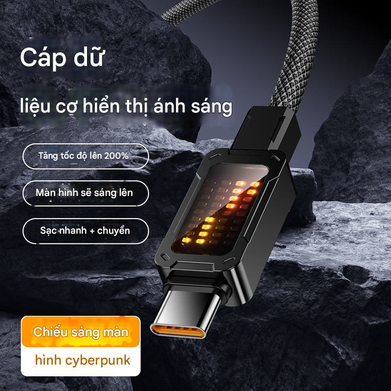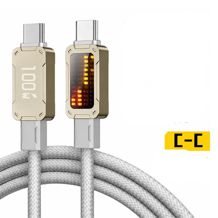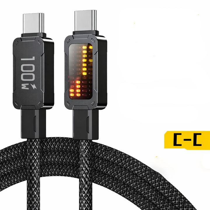 Cáp Sạc Type C 100W Chuẩn PD – Có Đồng Hồ LED, Dây Bọc Dù Siêu Bền