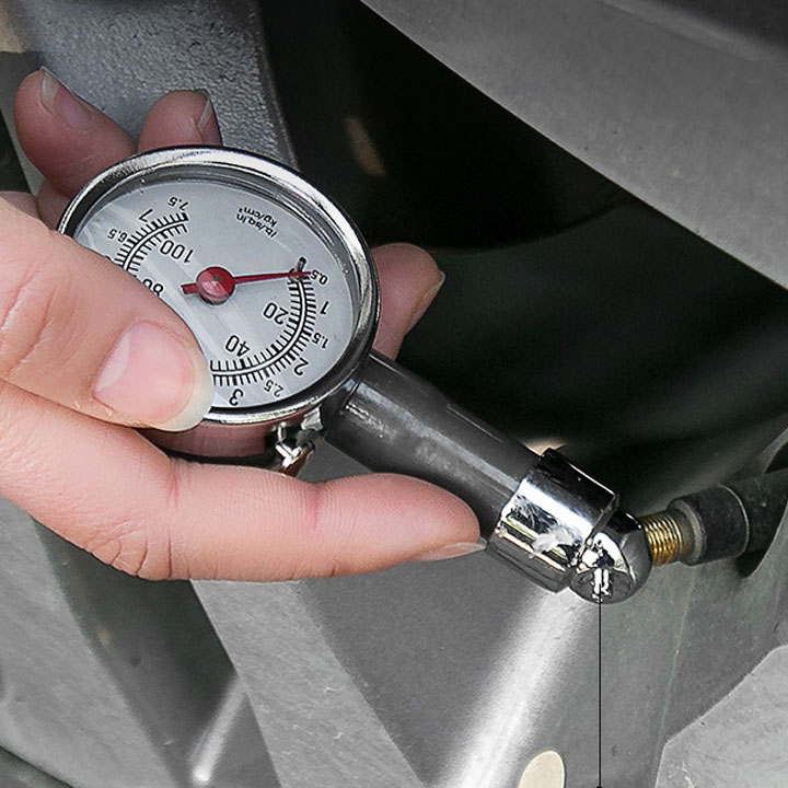 - Đồng hồ đo áp suất lốp dễ sử dụng, có đầu xả khí để xả bớt khí trong lốp trong trường hợp áp suất lốp cao hơn mức cần thiết