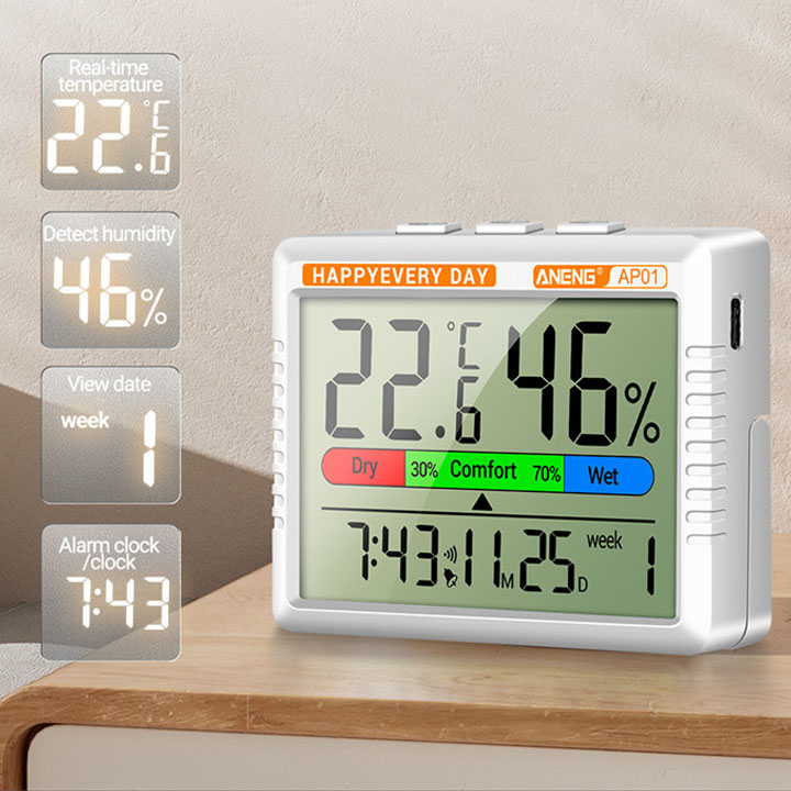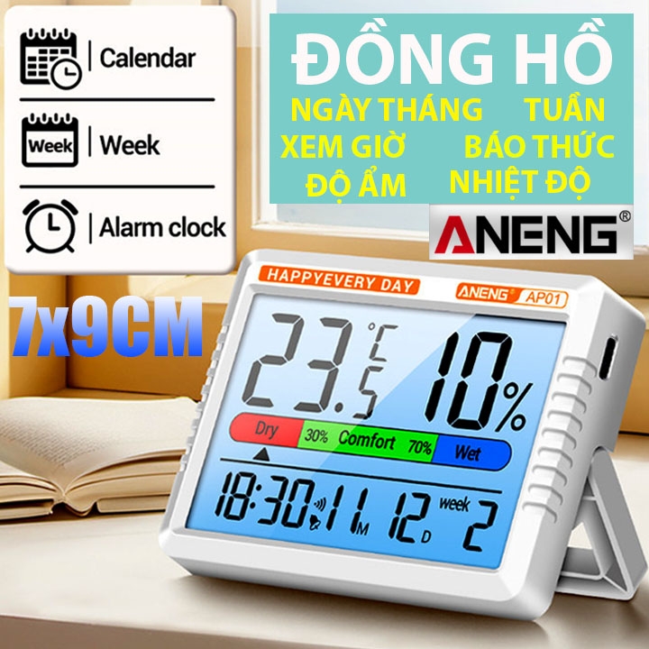 Đồng Hồ Mini ANENG Kiêm Nhiệt Độ Độ Ẩm Màn Hình Số Nét 2x7x9CM Nặng 82G