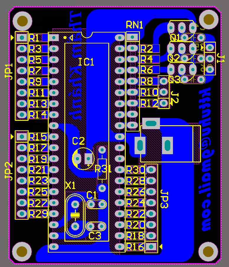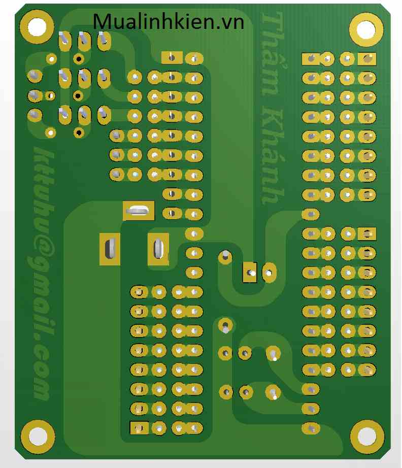 - Mặt dưới mô phỏng 3d: dùng trở cắm.