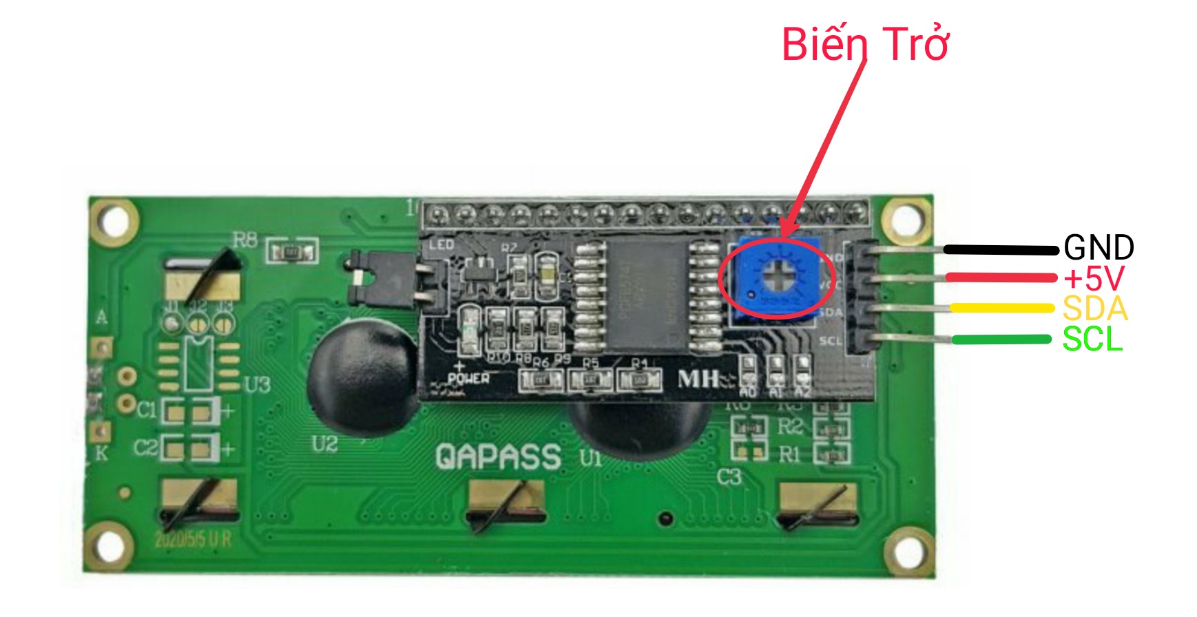 - SDA,SCL có thể kết nối trên Arduino để print chữ hiện lên màn hình LCD.