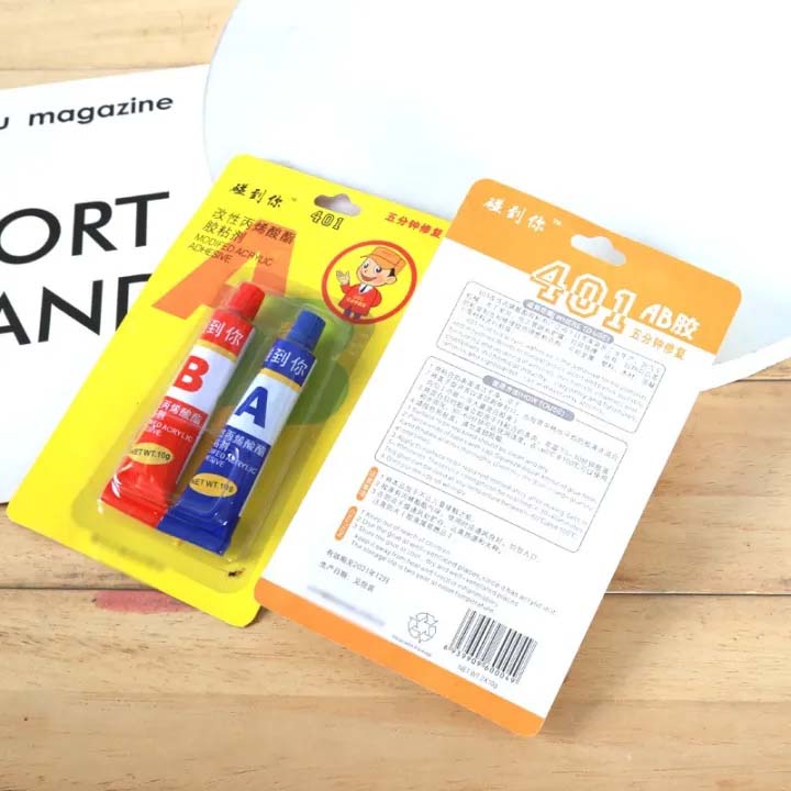 - Keo Dán A+B Đa Năng có thể dính sắt, thép, nhôm, titan, thép không gỉ, ABS, PVC, Polycarbonate, Plexiglas, Polyurethane, Polystyrene, FRP, vật liệu cốt sợi carbon, Ferrite, Gốm sứ, Xi măng, Bakelite, Gỗ và các loại vật liệu khác hoặc vật liệu không đồng nhất.