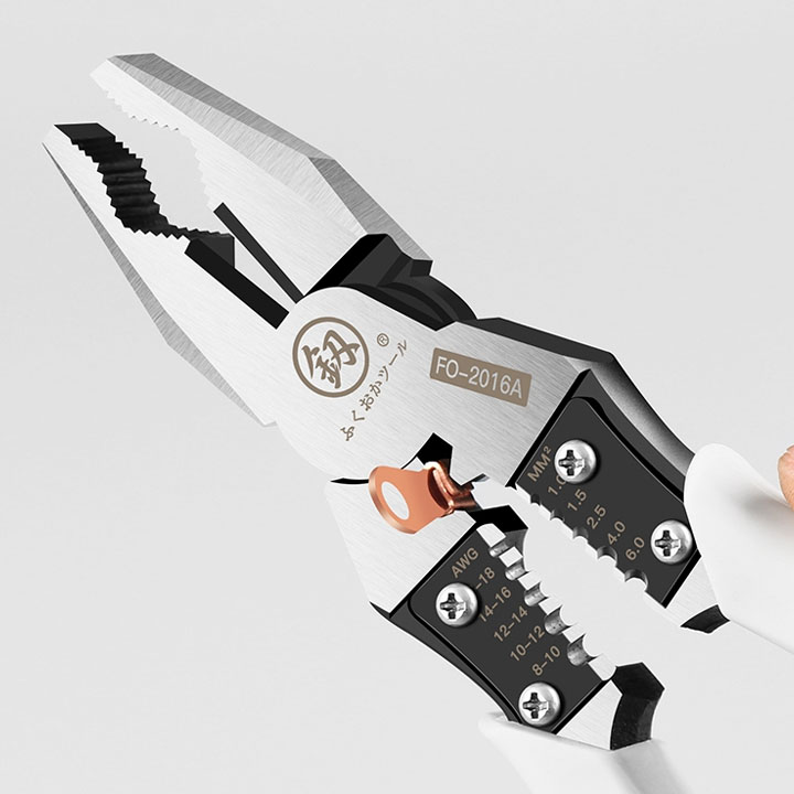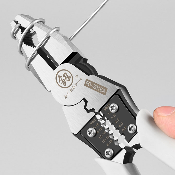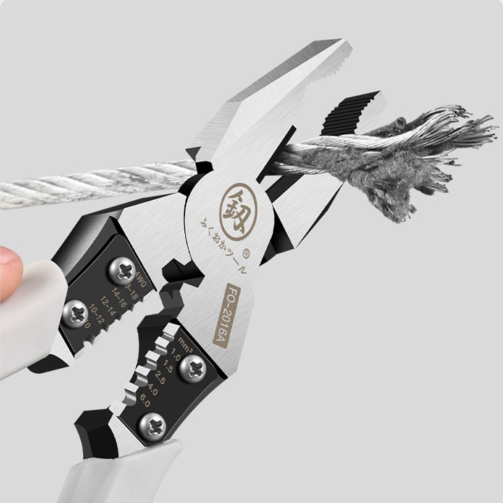 - Công dụng: Kẹp, Cắt, Uốn, Bấm Cos và Tuốt dây.