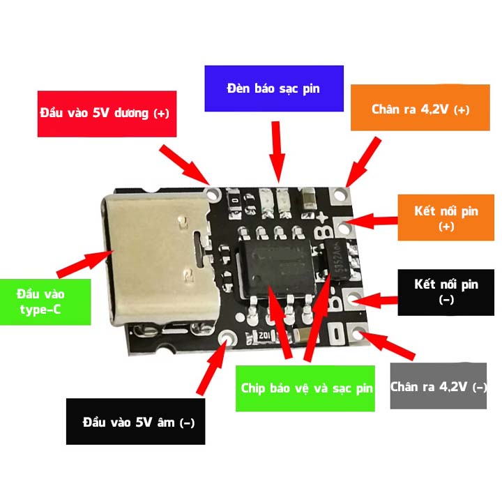 Mạch Sạc Pin Siêu Nhỏ 4.2V 1A Chân Sạc Type-C Có Bảo Vệ Pin