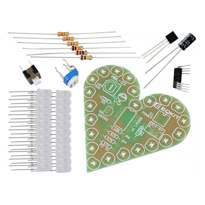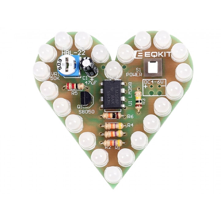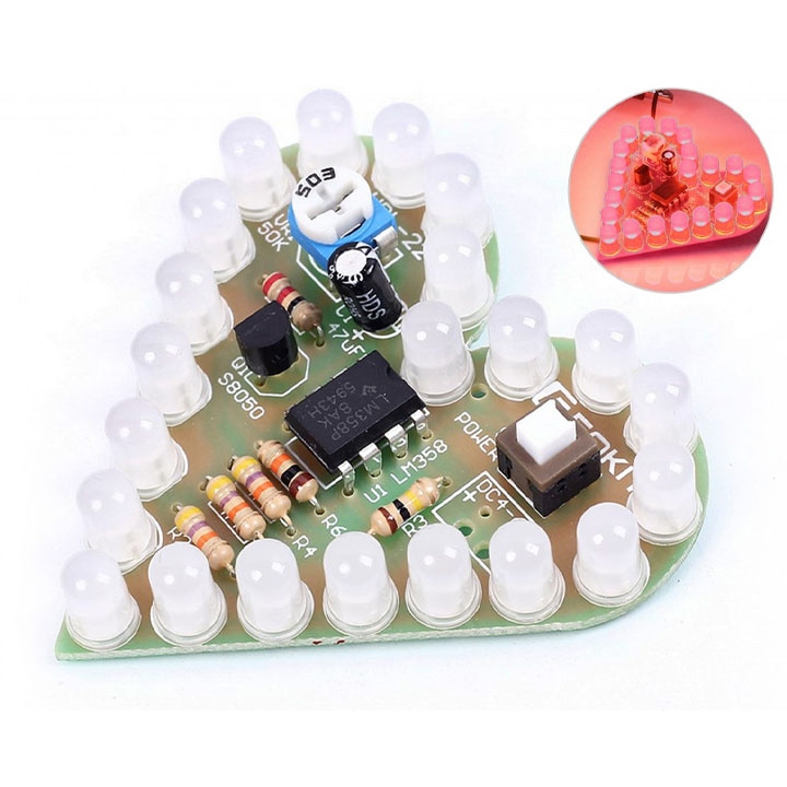 Bộ Linh Kiện Tự Ráp DIY B2 Led Trái Tim 22 Led Nhấp Nháy 4V-6V Kích Thước 5cmx5cm Sử dụng Lm358 Dip