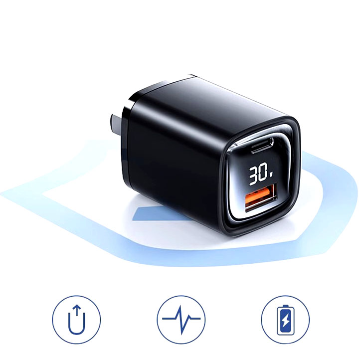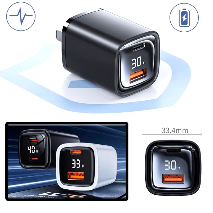 Củ Sạc Điện Thoại Di Động KS2 Màn Hình Hiển Thị Số Sạc Nhanh PD30W Cổng Sạc Kép Kích Thước 34x44Cm Trọng Lượng 55G