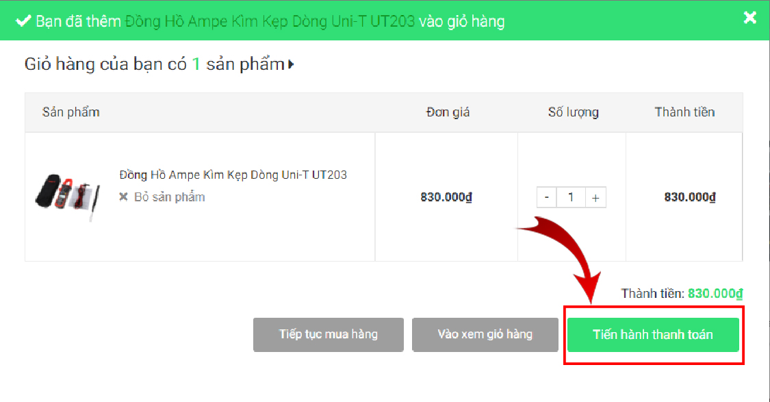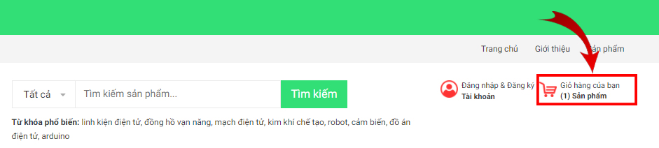 + Khi đã thêm tất cả sản phẩm muốn mua, khách hàng truy cập vào giỏ hàng và tiến hành thanh toán: