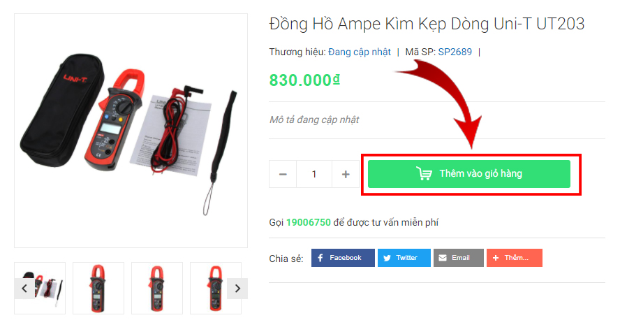 + Trong trang sản phẩm khách hàng thêm sản phẩm vào giỏ như hình dưới: