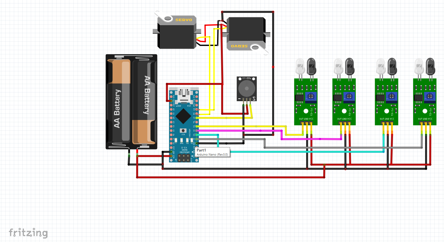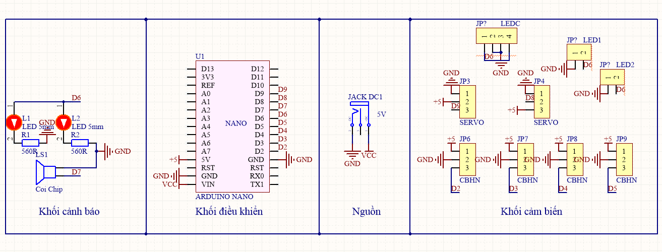- Arduino xử lý dữ liệu đó làm các SERVO hạ xuống như là barie, đồng thời bật còi cảnh báo.